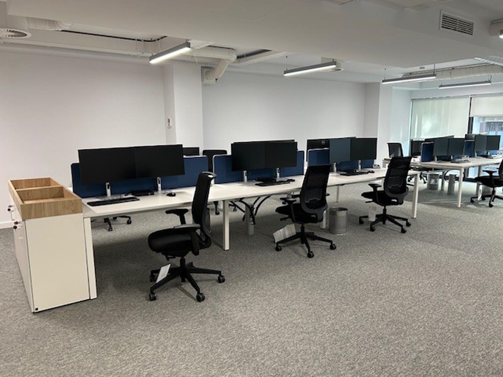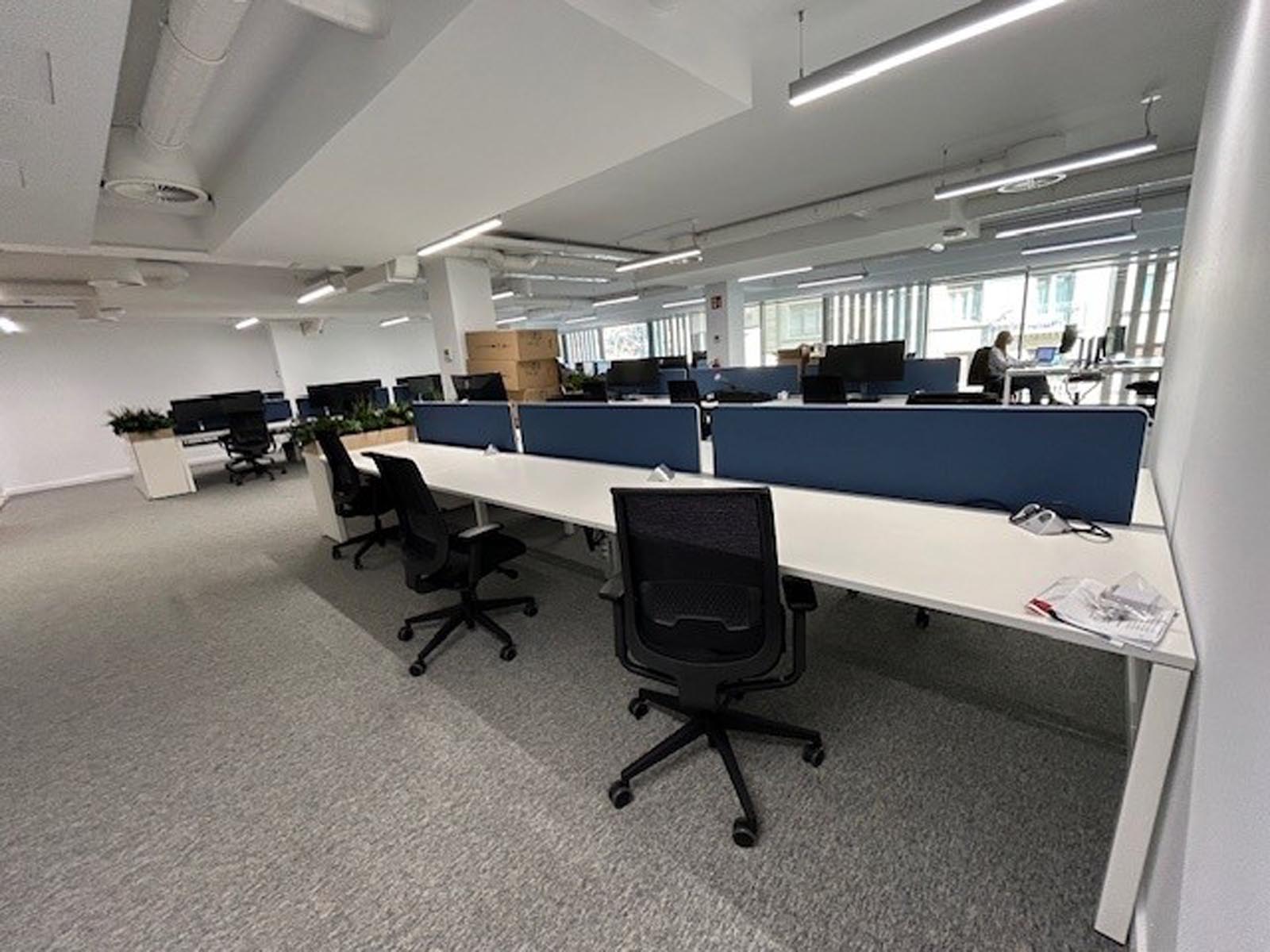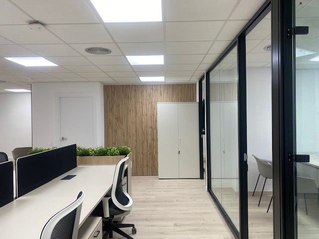 Diseñamos una propuesta de distribución funcional y atractiva. Seleccionamos mobiliario ergonómico, soluciones acústicas, iluminación adecuada y tecnología para videoconferencias, control de accesos o gestión de reservas.