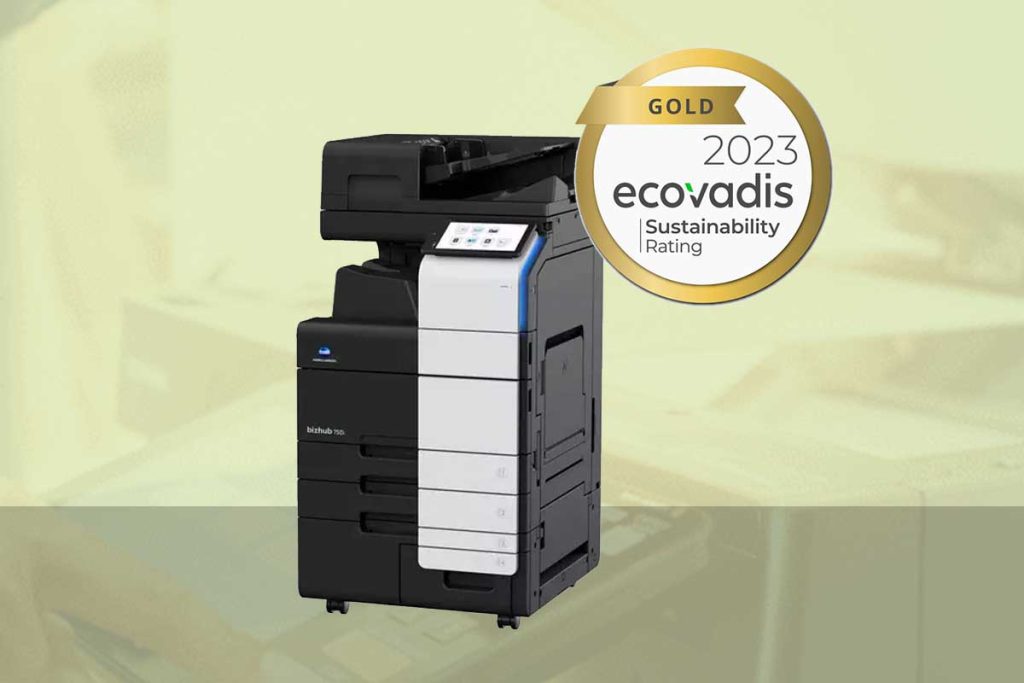 Konica Minolta, el fabricant de les impressores multifunció que distribuïm, ha obtingut una medalla d’or segons les qualificacions de sostenibilitat d’EcoVadis el 2023, cosa que la situa entre el 5% de les millors empreses del seu sector.